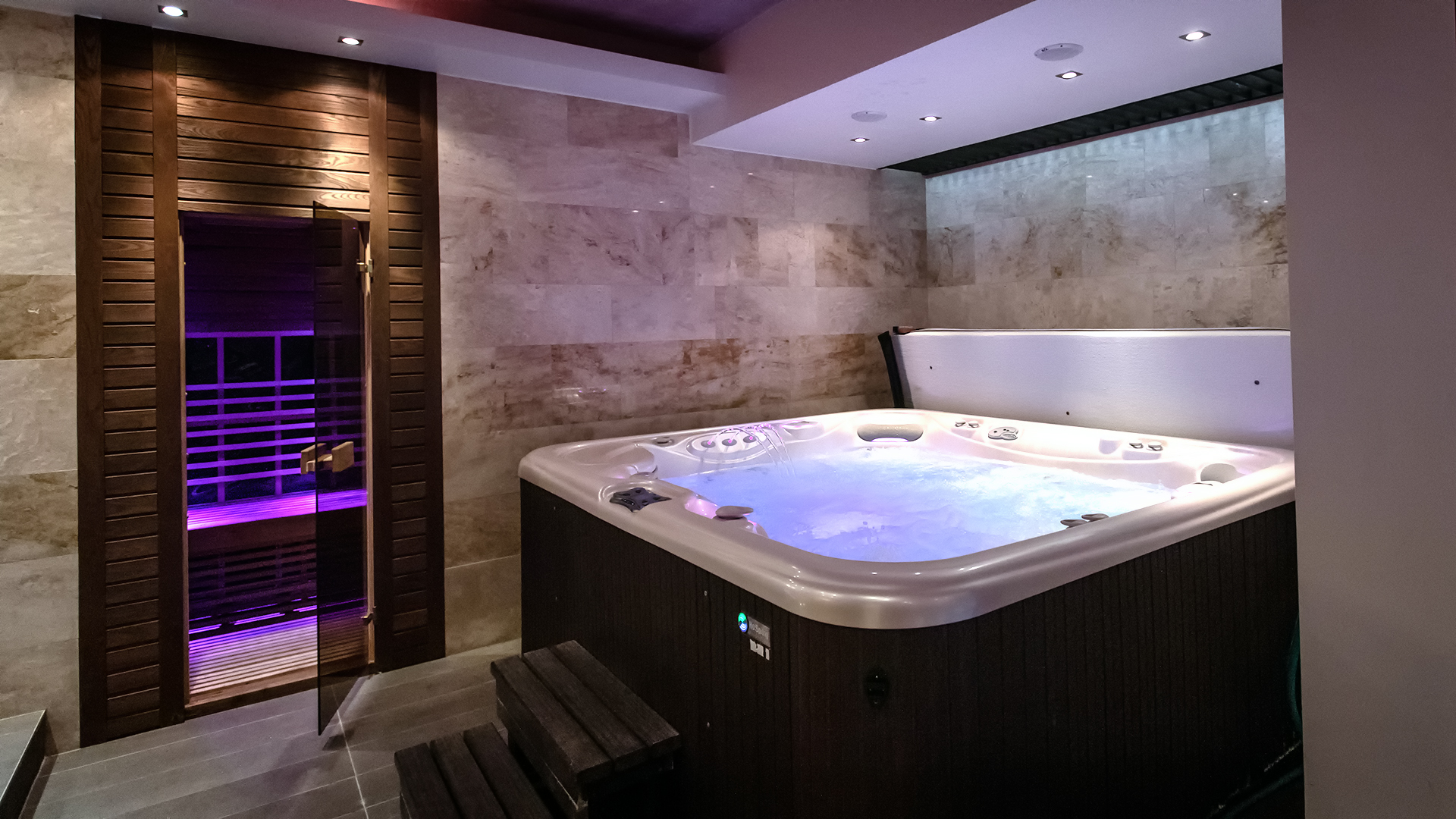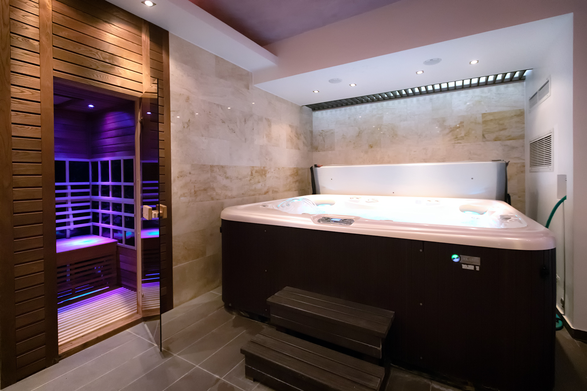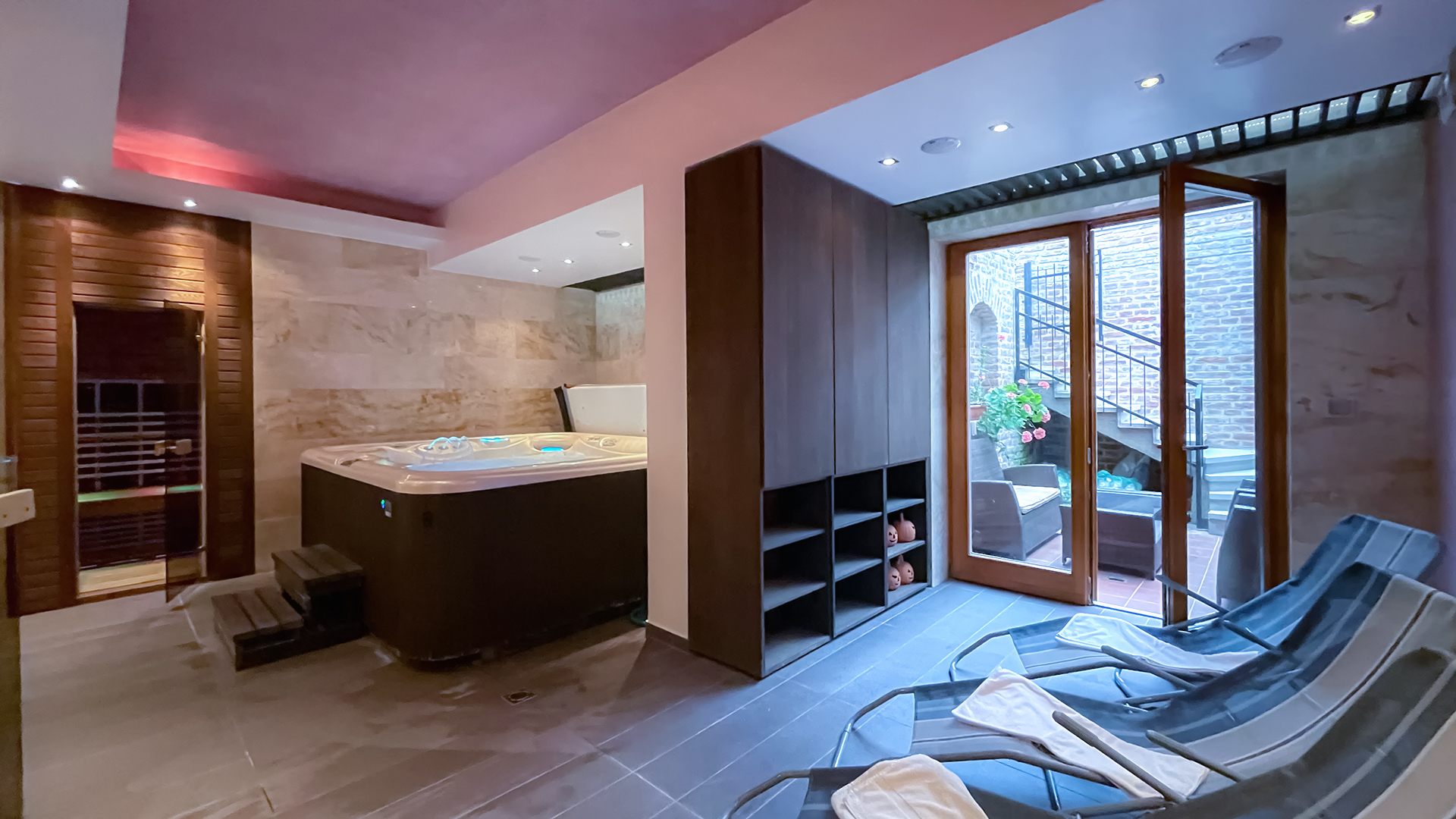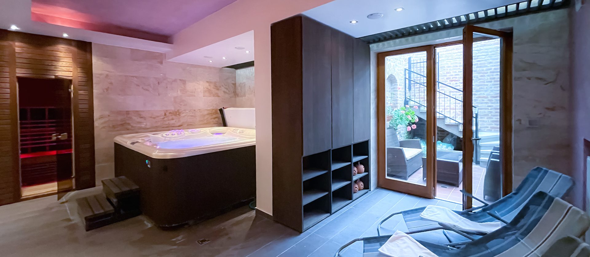 Apartmanházunk alagsorában egy privát wellness- és pihenőrészleg is helyet kapott, ahol jacuzzi, finn- és infraszauna, valamint zuhanyzó, pihenőágyak és egy kényelmes terasz vár.